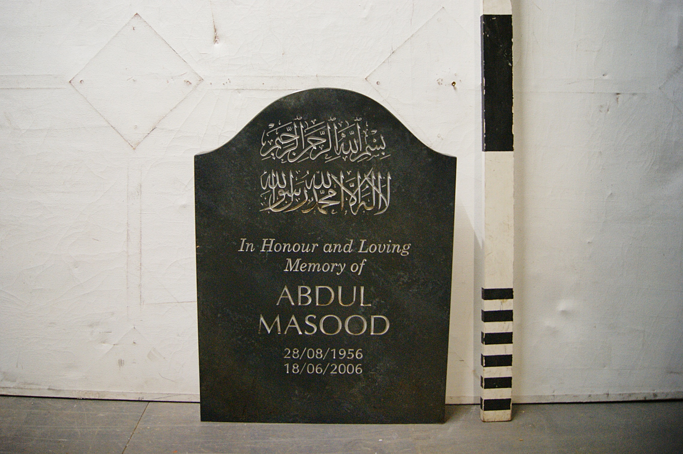 1161411 MDF Gravestone Abdul Masood ( H 74cm x 55 x 7.5 ) quantity